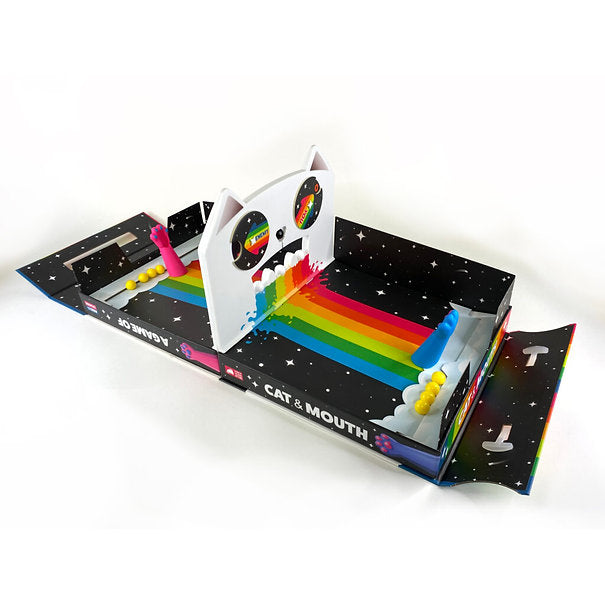 A Game of Cat & Mouth is a two-player game in which players use a magnetic cat paw to throw balls at each other.