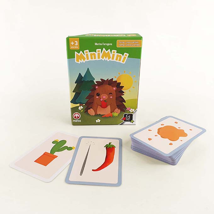 During a game of MiniMini, each player must find among their cards the object that has the characteristics closest to what they are looking for. Whether it's shapes and colors, or concepts like salty, sweet, hot, cold, spicy, noisy, etc. The first one to drop all their cards is the winner! MiniMini invites players to use their observation skills, sensory memory and argumentation skills to create fun situations: "Do you really think the cat smells bad?"