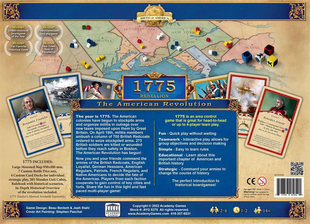 I Libro de reglas con escenarios históricos y panorama general de la Guerra de Independencia de los Estados Unidos.