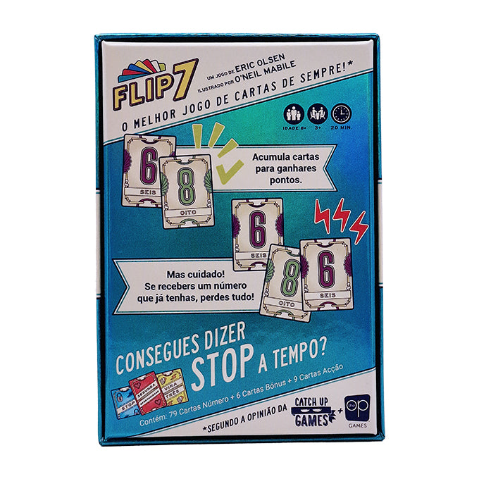 ¿Suena fácil? ¡Piénsalo otra vez! Esta no es cualquier baraja de cartas... En Flip 7™ solo hay una carta 1, dos 2, tres 3, etc., además de un montón de cartas especiales que pueden darte puntos extra, darte una segunda oportunidad o congelarte a ti o a tus oponentes.