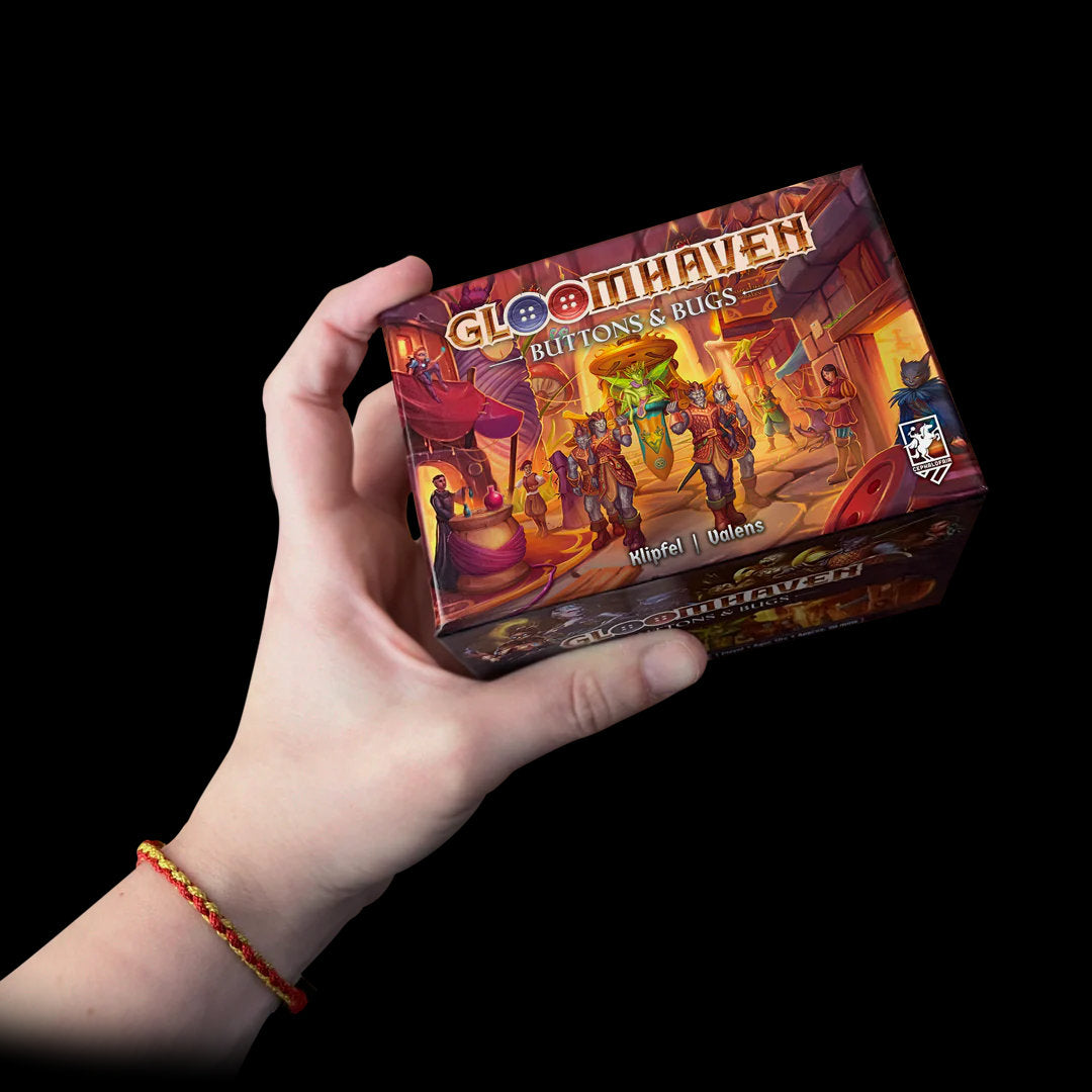 Buttons & Bugs te ofrece el mismo combate estratégico profundo que Gloomhaven pero en una fracción del tamaño. Su tamaño compacto y su sistema aerodinámico significan que puedes configurar y jugar un escenario en menos de 20 minutos, ¡y cabe en tu mesa de café o incluso en la bandeja de un avión!