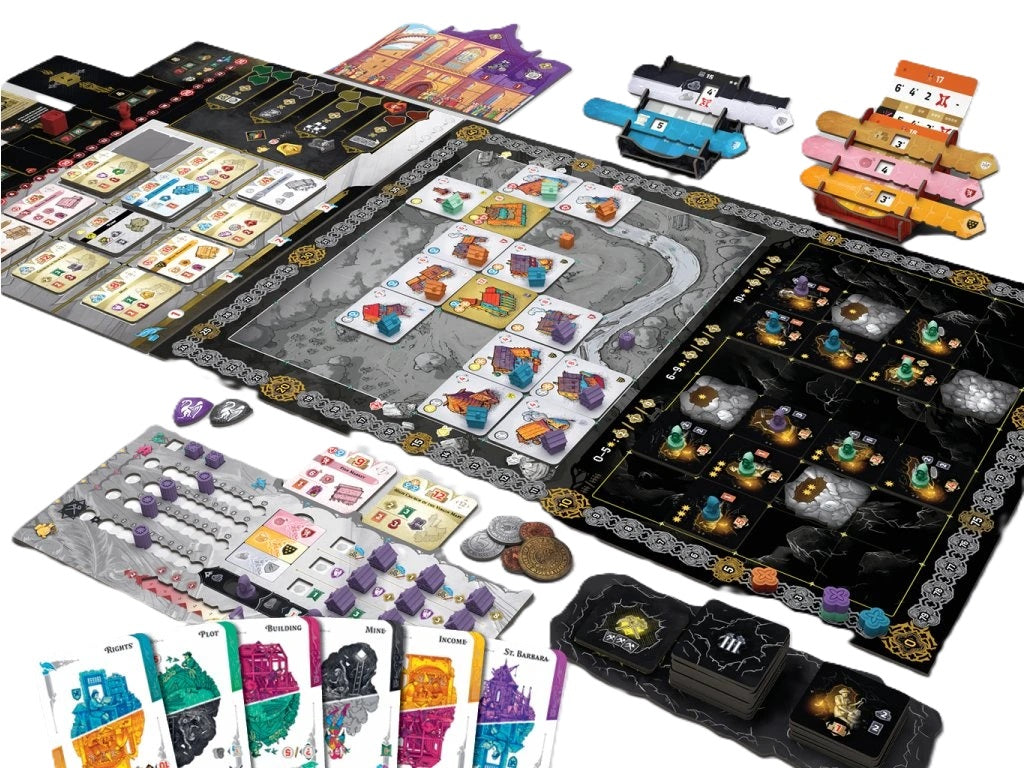 Kutná Hora: la ciudad de la plata es un eurogame histórico de construcción de ciudades para 2 a 4 jugadores que presenta una experiencia de oferta y demanda real en la que cada acción que realizas tiene un impacto en los sistemas económicos dinámicos del juego.