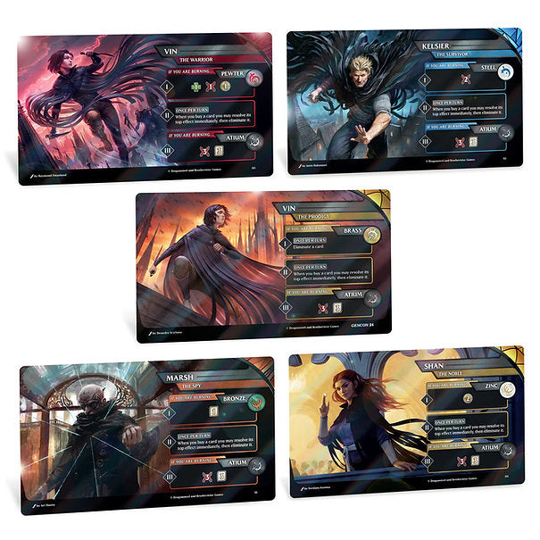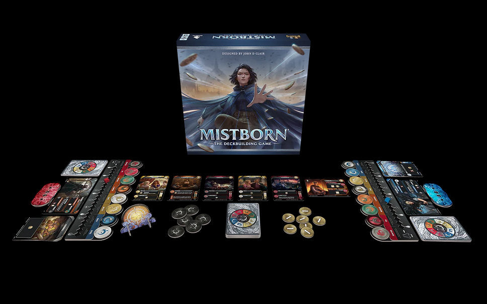 Based on the hit Mistborn novel series by Brandon Sanderson, the Mistborn Deckbuilding game takes players into the world of Scadrial! From designer John D Clair, players get to control iconic characters from the series and "burn" metals to unlock Allomantic powers in fast-paced battles.