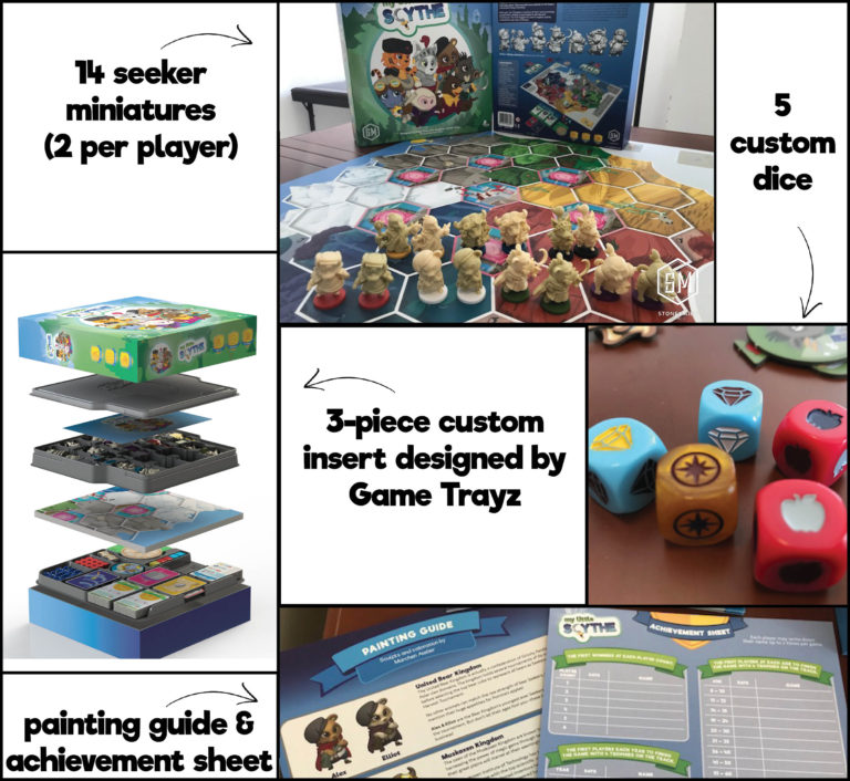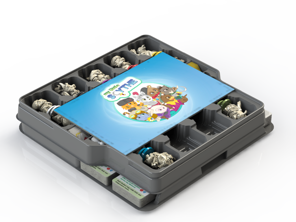 My Little Scythe is a competitive, family-friendly game in which each player controls 2 animal miniatures embarking upon an adventure in the Kingdom of Pomme.